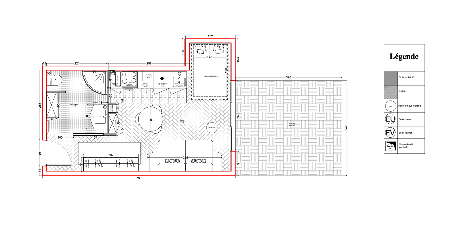 Logement de 26 m2 réalisé par le Groupe ICADE et REI. Exposé plein sud et traversant, la lumière s'est imposée comme fil conducteur. Cabana de Luz reprend l'univers poétique de Jean Cocteau. Le tout dans une ambiance naturelle où les matières proposent des jeux de lumières. L'aménagement du lieu a été pensé pour pouvoir circuler librement et prévoir du rangement. Au sein de ce petit studio, le cellier a été transformé en chambre avec un lit escamotable, permettant d'agrandir la pièce de vie donnant sur un jardin de 20 m2.