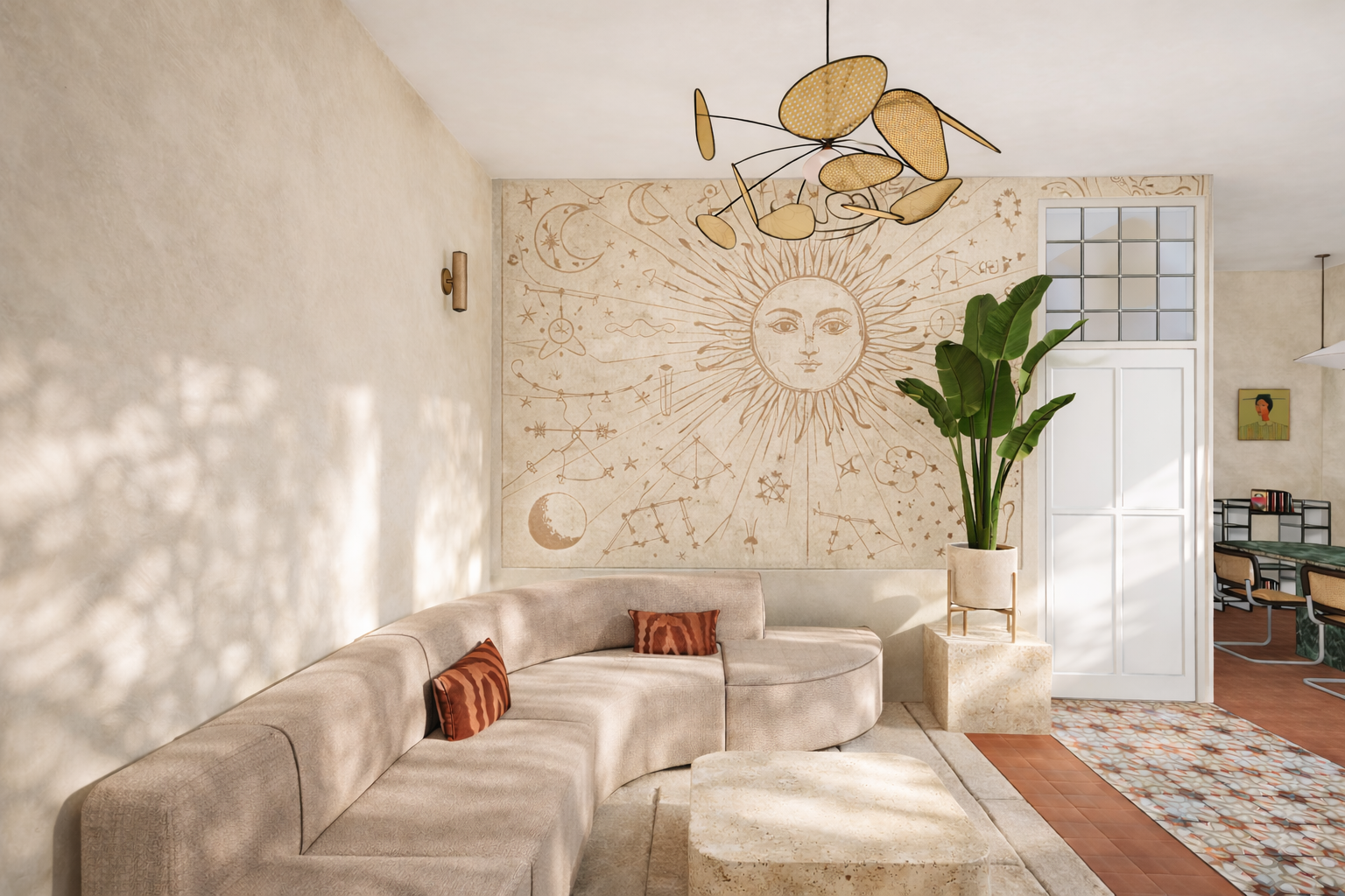 "Je ne puis voir la mer sans rêver de voyage." Sol, c’est le projet d’une rénovation de 80 m2 dans le Sud de la France, inspiré du Poème d’Emile Verhaeren. L’espace a été repensé pour créer une réelle distinction entre le salon et la salle à manger, initialement confondus. Pour cela, nous avons décloisonné l’espace de part et d’autre de l’entrée existante, redéfinissant ainsi les volumes de vie.